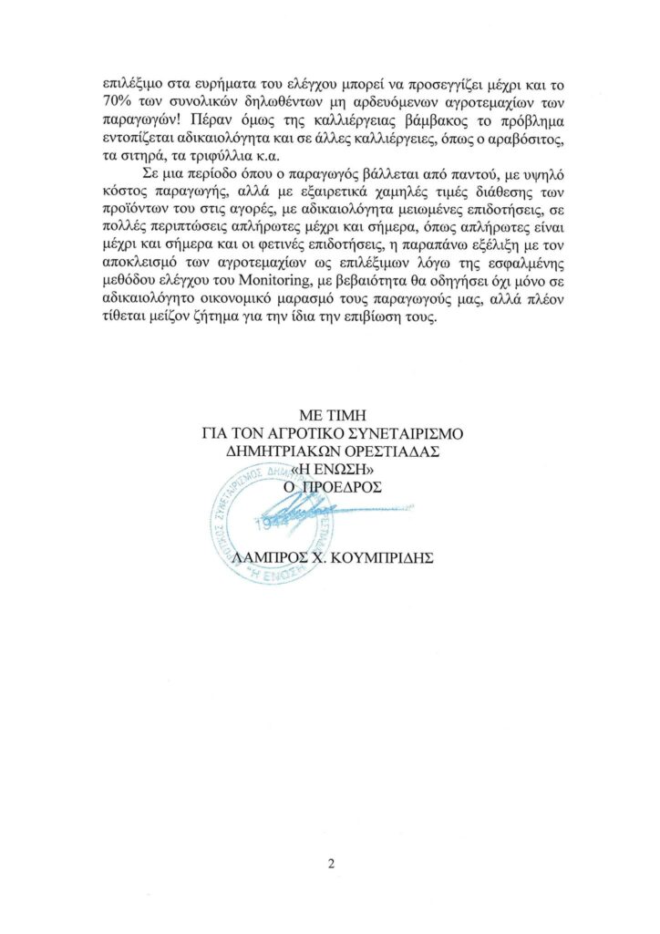 Βέβαια, όπως αναφέρεται και σε σχετική ανακοίνωση της ΕΑΣ Ορεστιάδας, τα αγροτεμάχια αυτά είναι νόμιμα καλλιεργημένα και δηλωμένα στο ΟΣΔΕ, με πραγματική σοδειά. Επομένως οι παραγαγοί κινδυνεύουν, λόγω του τρόπου ελέγχου του συστήματος, να αποκλεισθούν ως δικαιούχοι ενισχύσεων.
